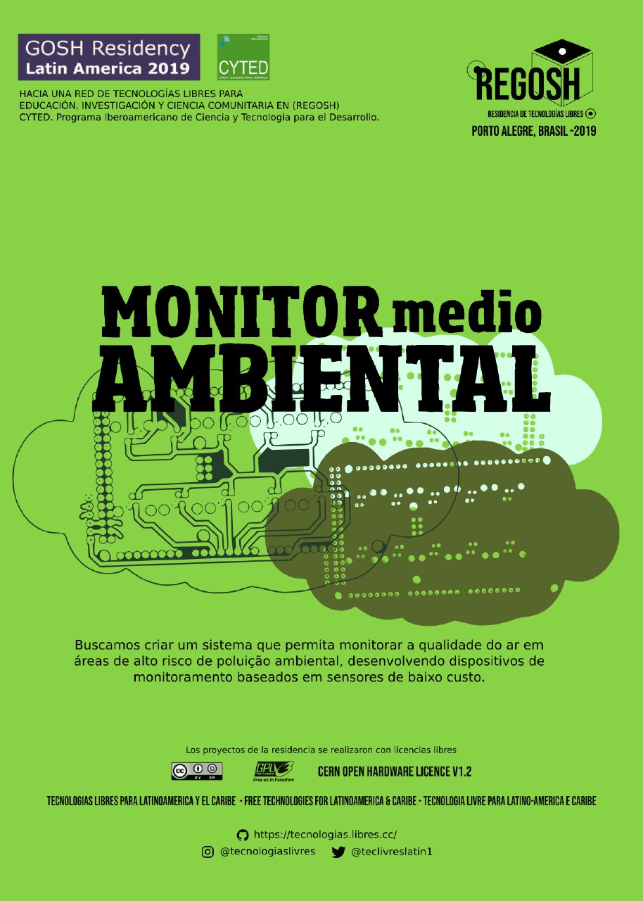 In the first residency taken in Porto Alegre, Brazil (2019), we proposed to build an environmental monitor as a way to visualize the problem that lies in our city, Lima. Lima, Perú, is considered as one of the pollutant capital cities around the world. Air Pollution can generate various health problems in humans, and different factors produce it in an environment. However, the most common of pollution in cities is the urban life, the emission that vehicles emit, and so on. However, this threat remains invisible in some countries as there are not enough studies and data to reveal this danger in those places. Additionally, measuring the air quality in a city is costly because there are no sensors that continuously measure the air at every location point in a city. The few sensors that exist are found in laboratories. Here is where the project Environmental Monitor comes in. This project proposes a low-cost air-quality sensor that can be implemented in any place to measure the level of pollution at that location. Making these devices accessible eases the process of implementing several sensors of this kind in different areas, so we can monitor the air quality and gain visibility of the problem.